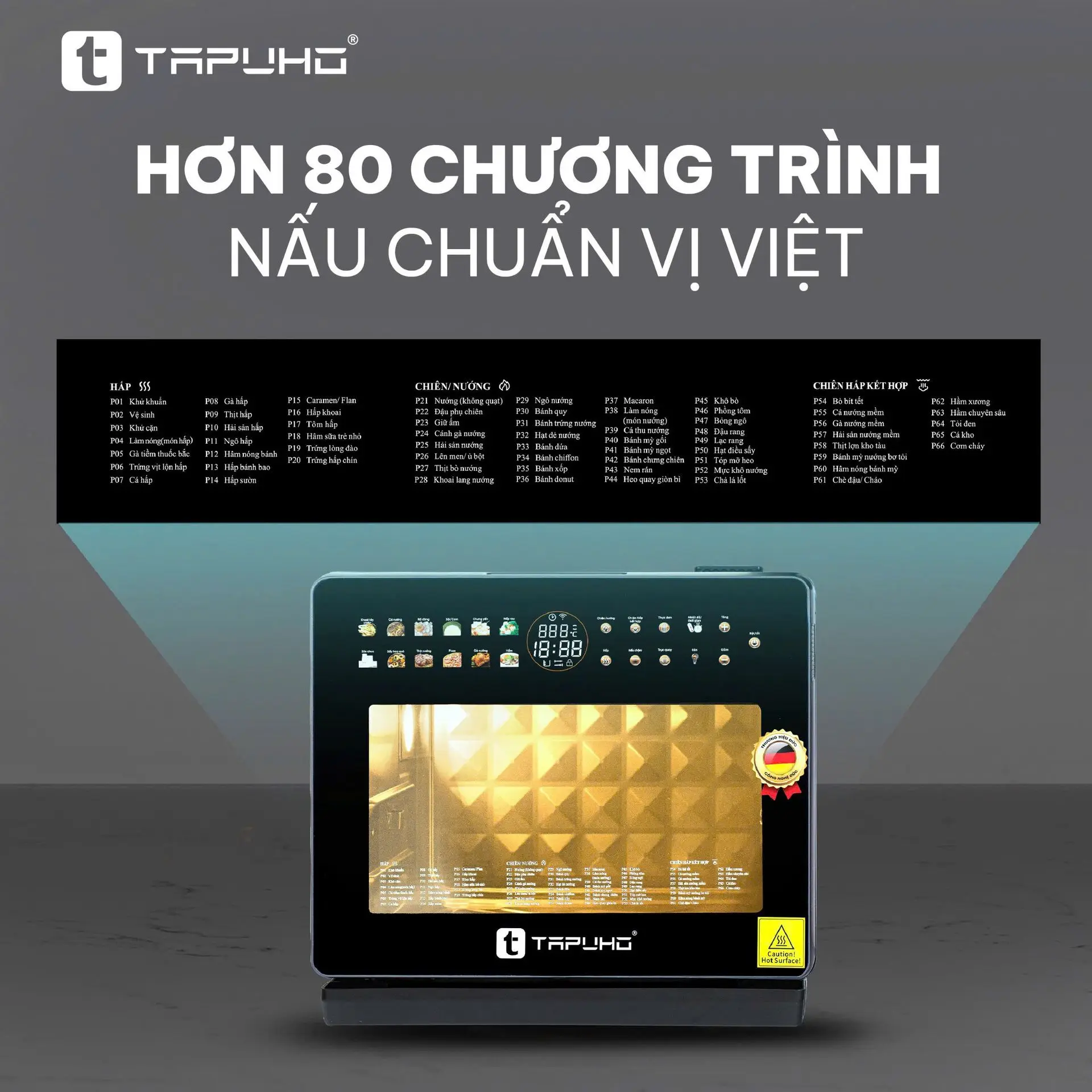 TAPUHO TMC20 PrimeAI không chỉ nổi bật ở khả năng nấu nướng đa dạng mà còn được chú trọng trong thiết kế lập trình thông minh, hướng đến độ bền tối ưu và an toàn tuyệt đối cho người sử dụng.