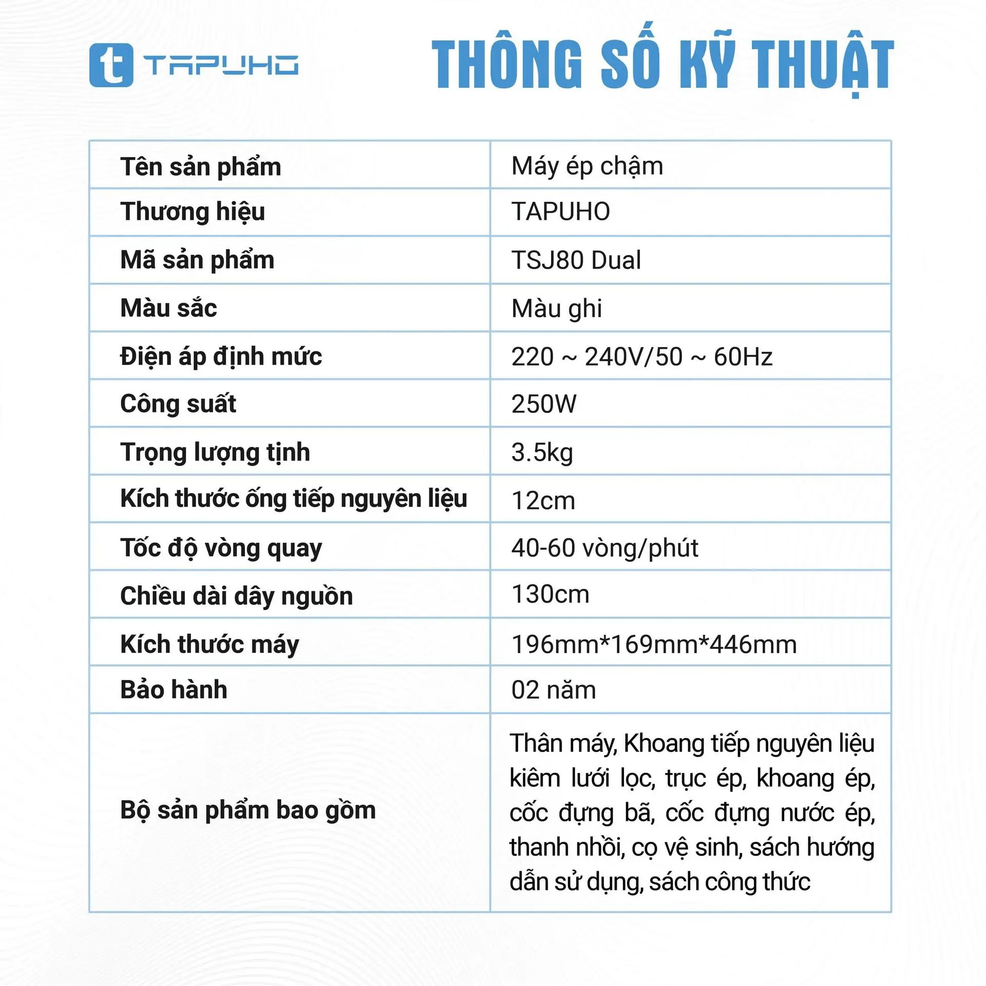 👉 Ép an toàn – dùng lâu dài – yên tâm mỗi ngày cùng TAPUHO TSJ80 DUAL.