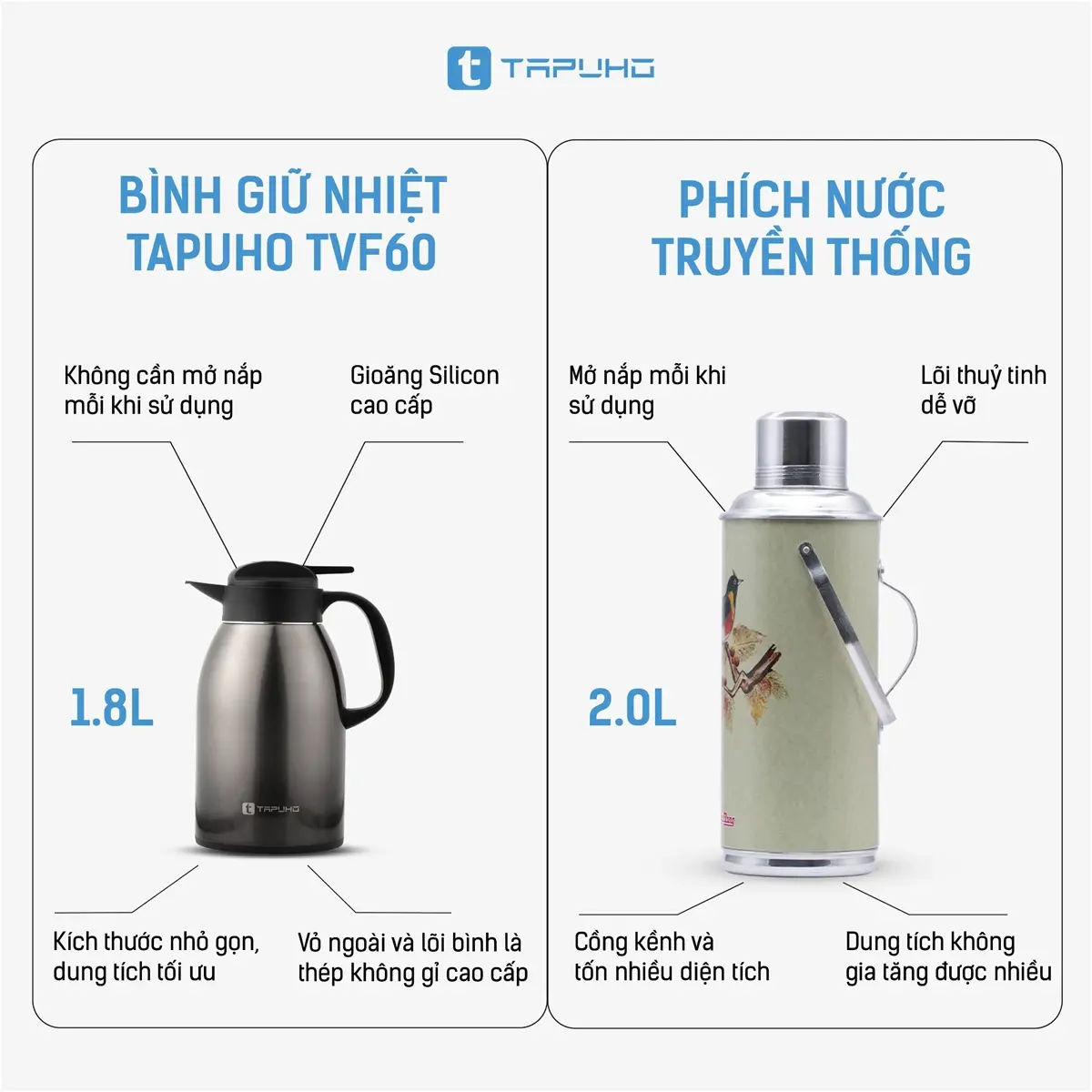 Bình Giữ Nhiệt TAPUHO TVF60 1800ml